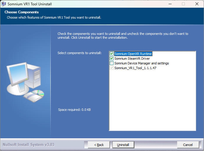 - Somnium OpenXR Runtime will remove the Somnium OpenXR libraries from ProgramData folder.