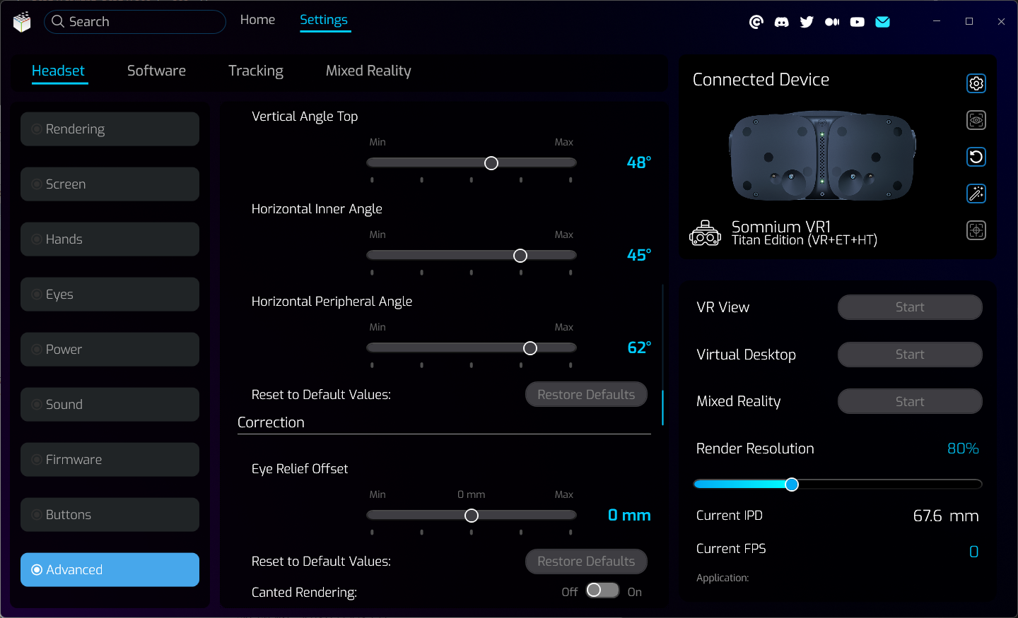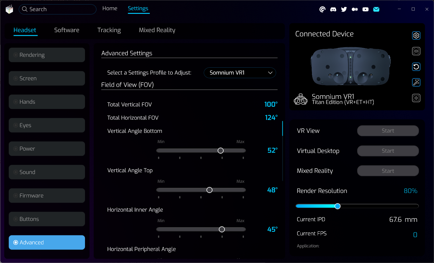 - If Somnium VR1 profile is selected, the default profile values will be used, and you won’t be able to change the additional options on this page.