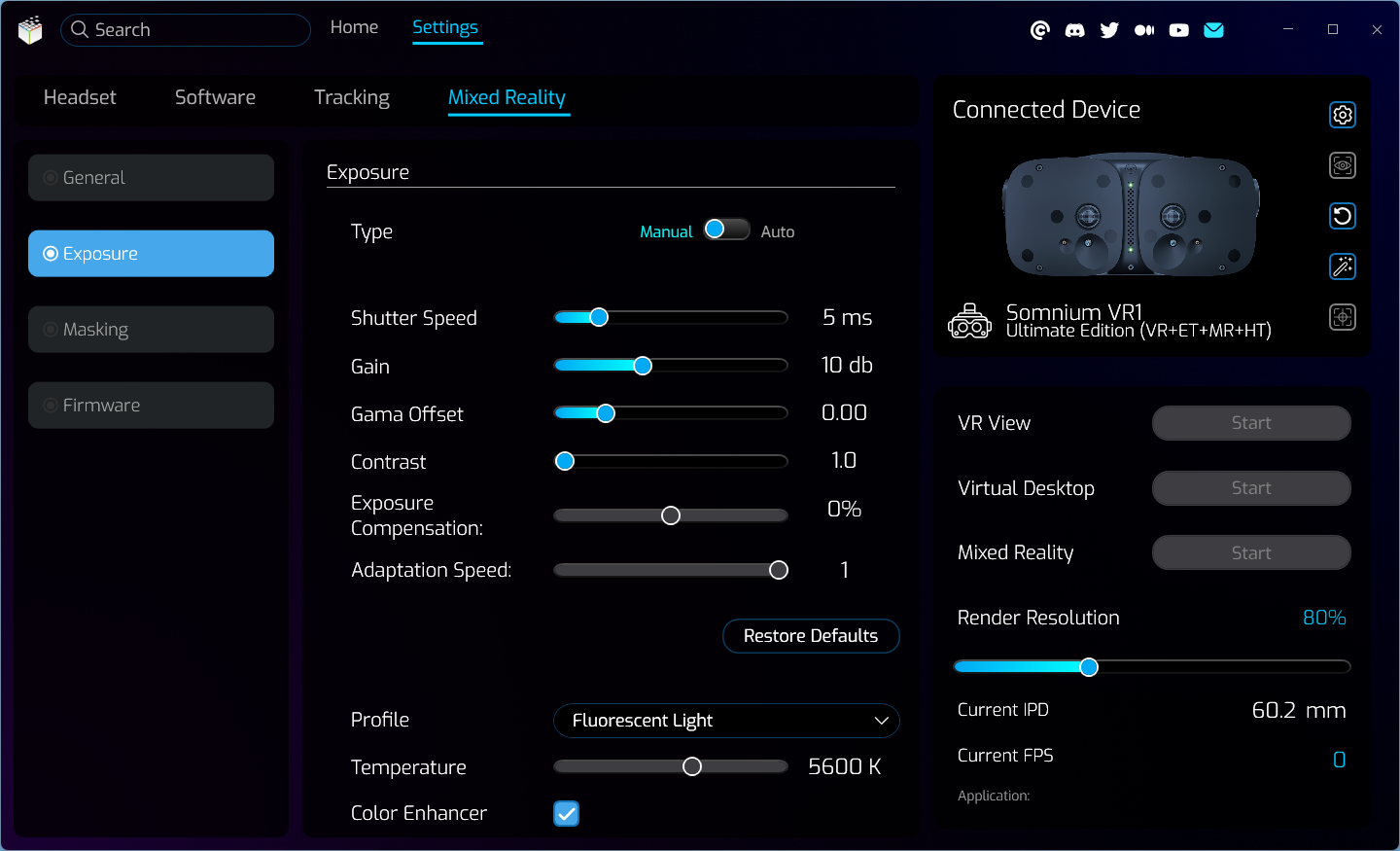 - Can be used to adjust the gain value of connected mixed reality cameras.