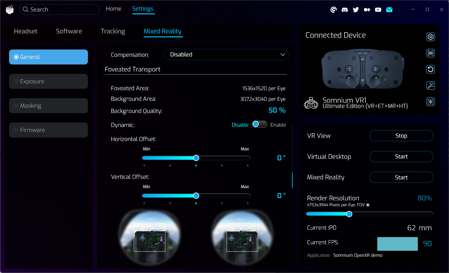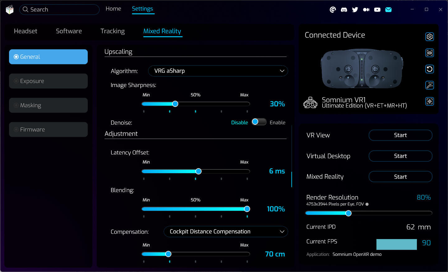 - The MR compensation options are specifically useful when you are using the Somnium headset with a physical cockpit and the mesh masking option, but some can also be utilized for other masking options.