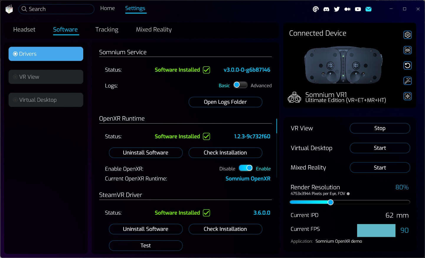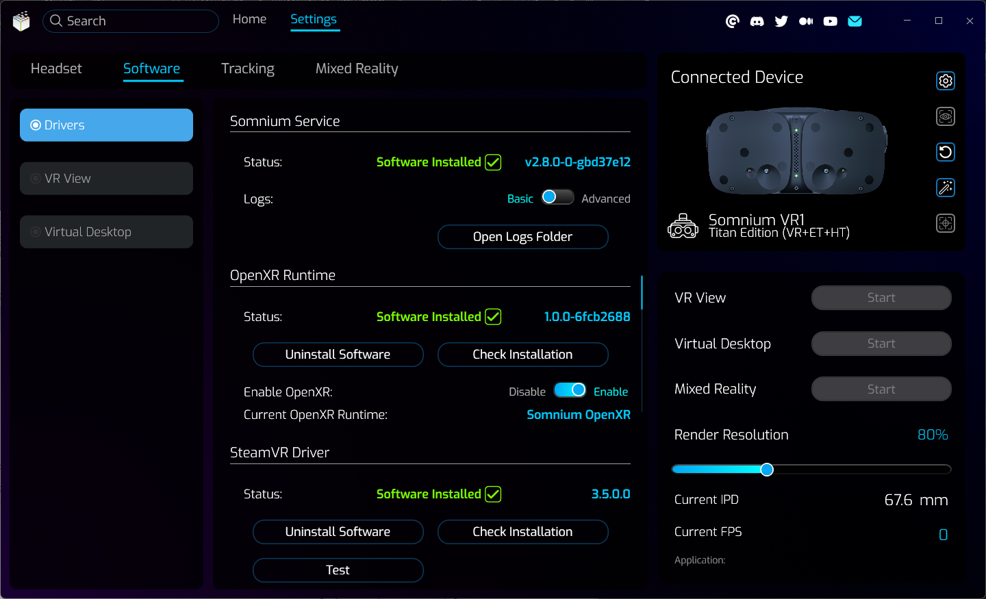 < PreviousNext >Software category contains installation and details of software drivers, VR View options, and Virtual Desktop options.